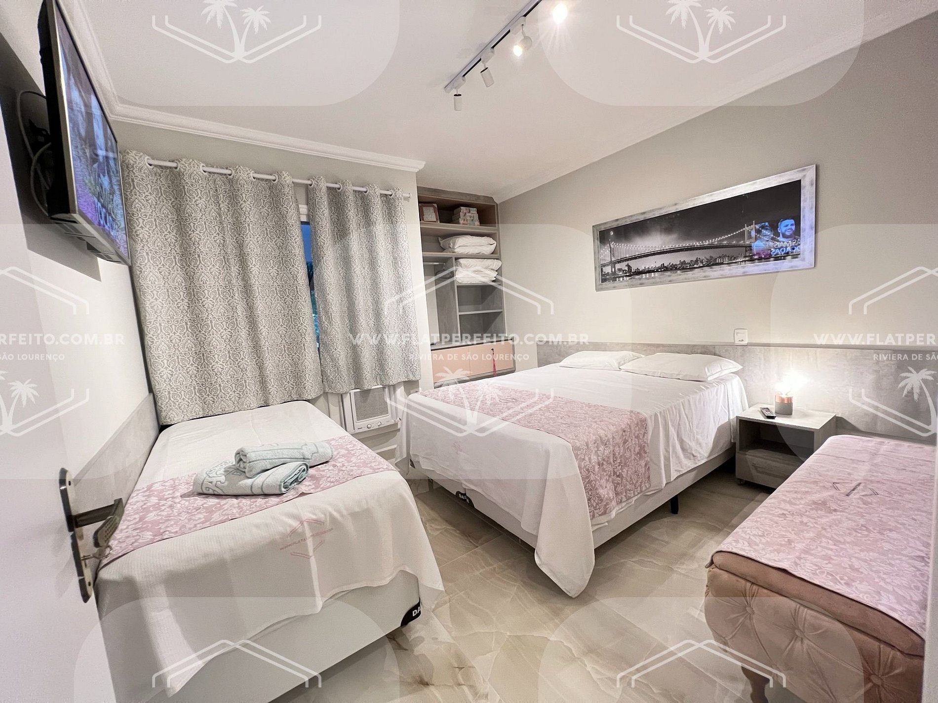 Nas locações realizadas nos apartamentos do "Flat Perfeito", você terá sempre incluso o café da manhã, enxoval completo, inclusive toalhas de praia e piscina (com trocas diárias) e cobertores, totalmente sem custo. Wi-fi privativo em cada um dos apartamentos.