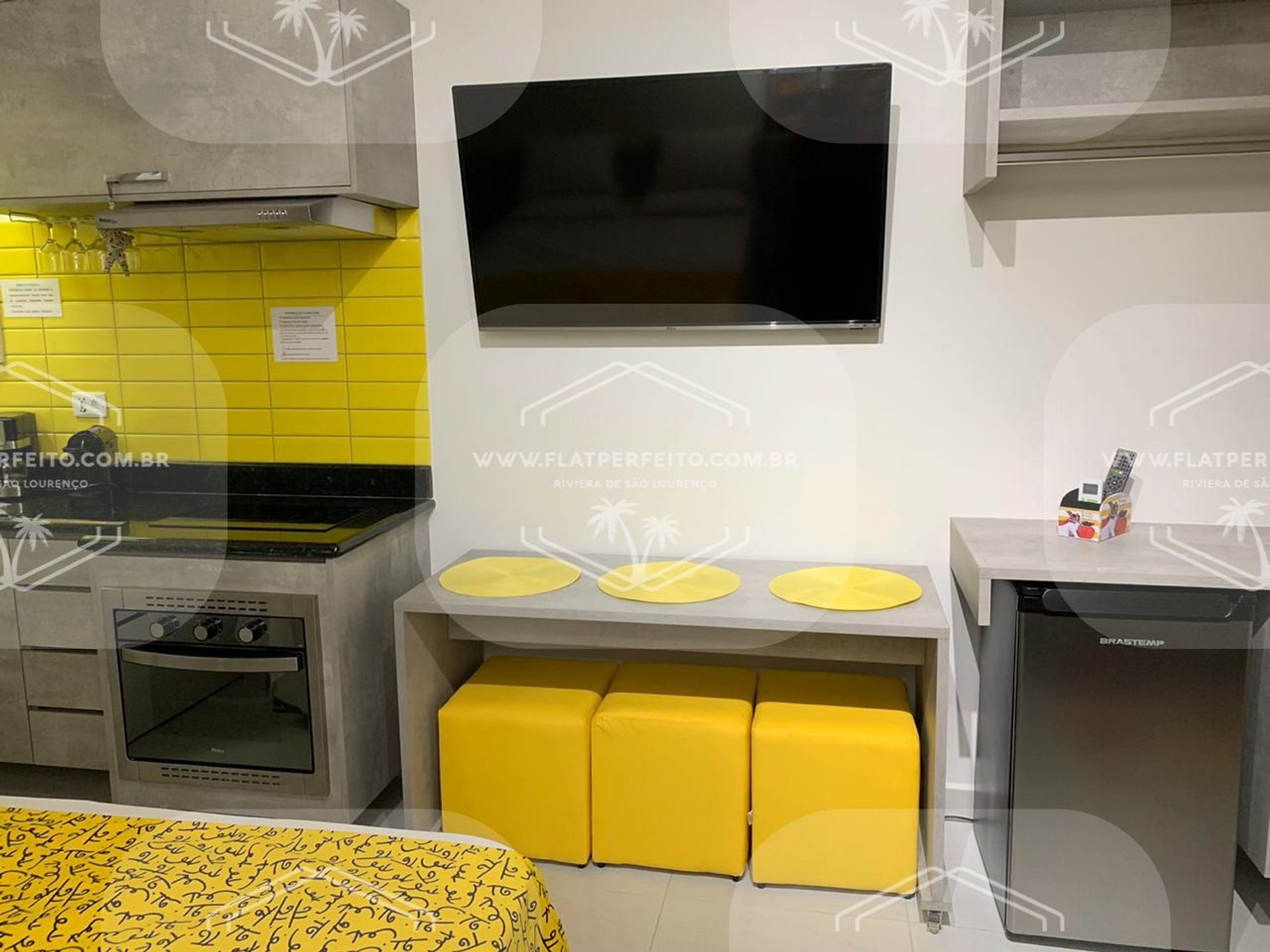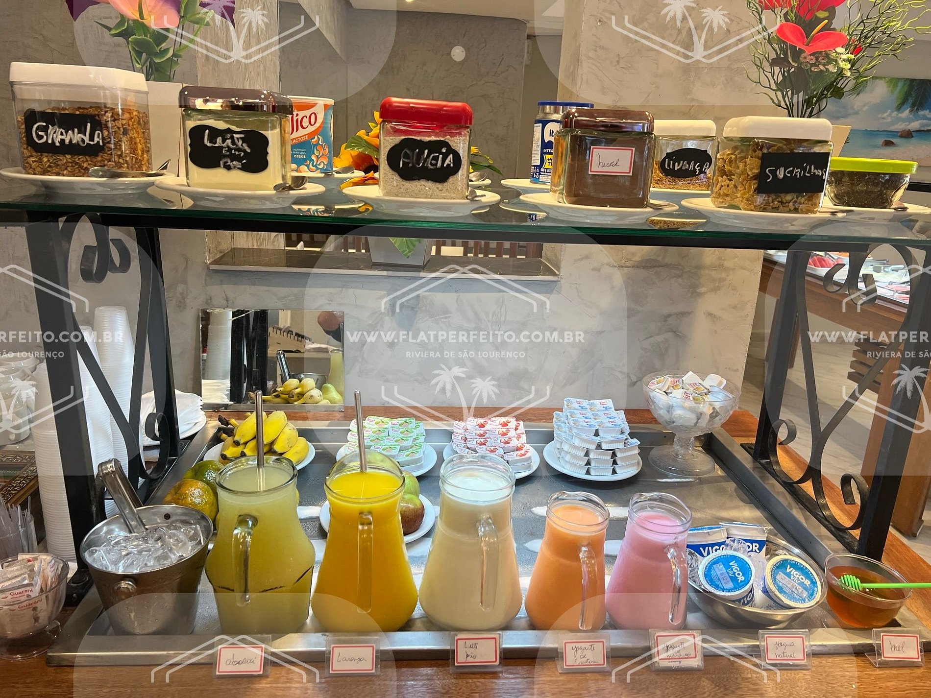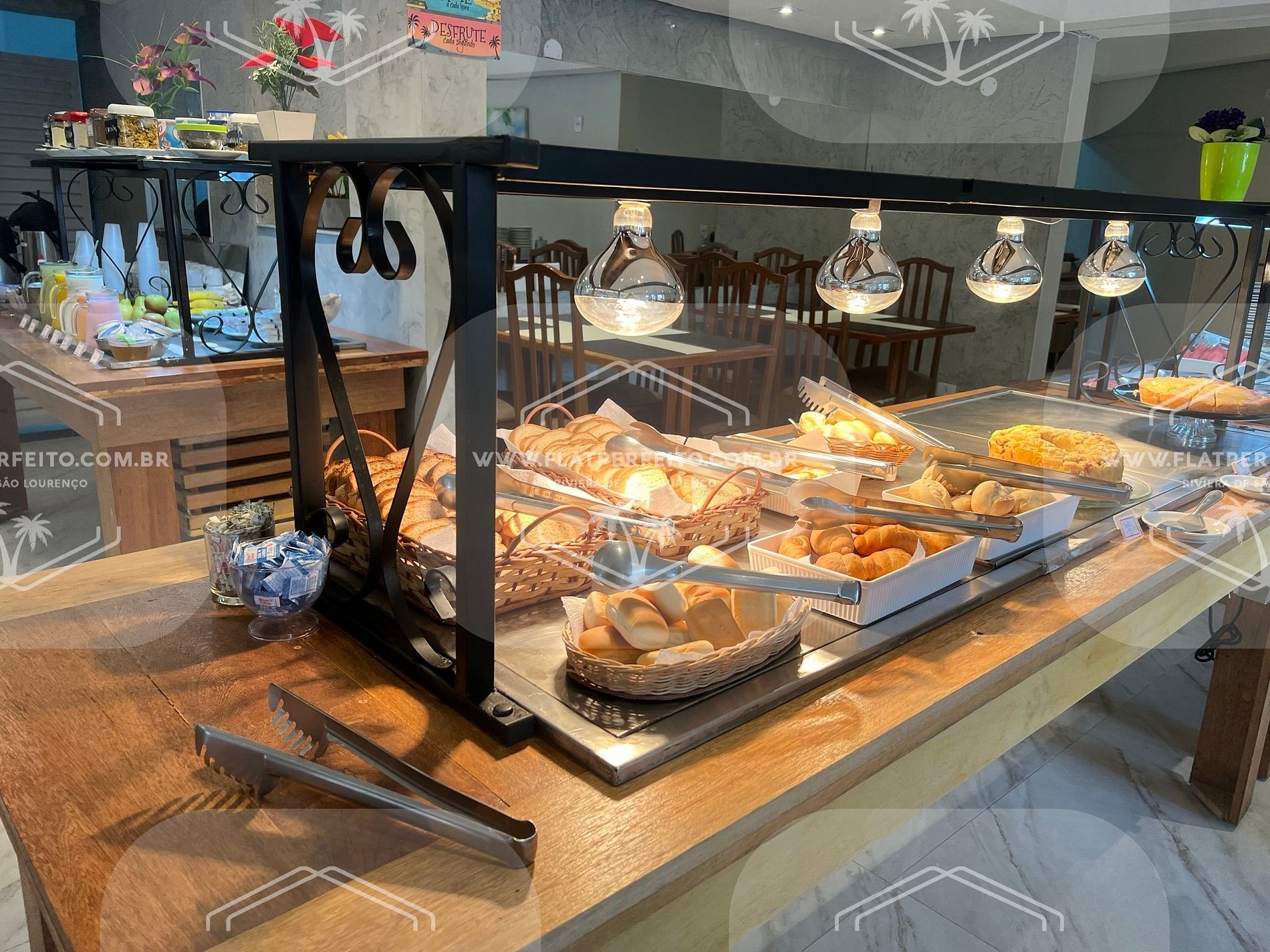 Nas locações realizadas nos apartamentos do "Flat Perfeito", você terá sempre incluso o café da manhã, enxoval completo, inclusive toalhas de praia e piscina (com trocas diárias) e cobertores, totalmente sem custo. Wi-fi privativo em cada um dos apartamentos.
