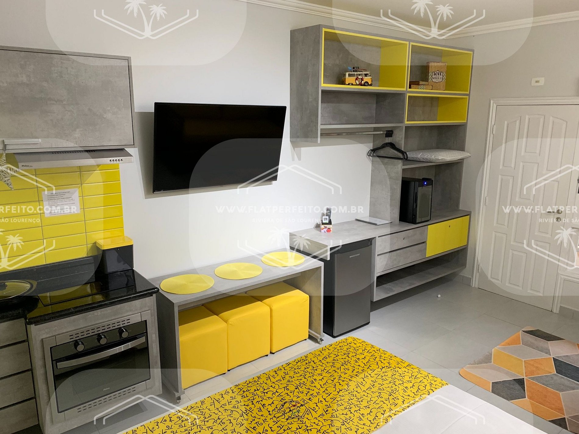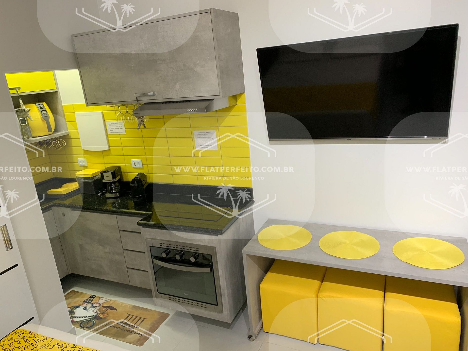 Todas as unidades possuem cozinha, banheiro, ar-condicionado e smartTV´s de 49´a 55´ em todos os ambientes, microondas, airfryer, geladeira, fogão, cafeteiras Nespresso e convencional filtro 102, torradeira, sanduicheira. Alguns ainda contam com liquidifcador, panela de arroz, mixer.