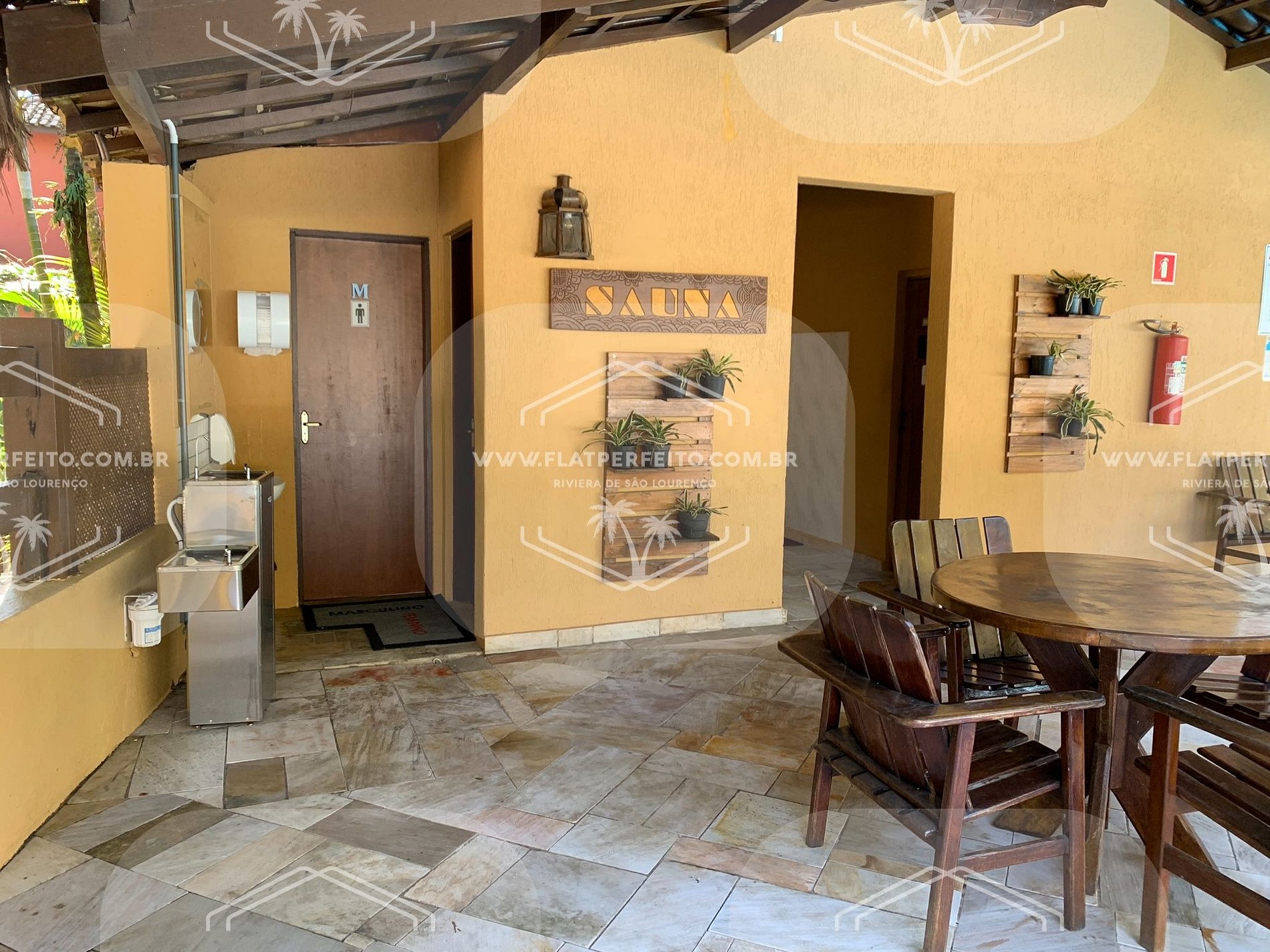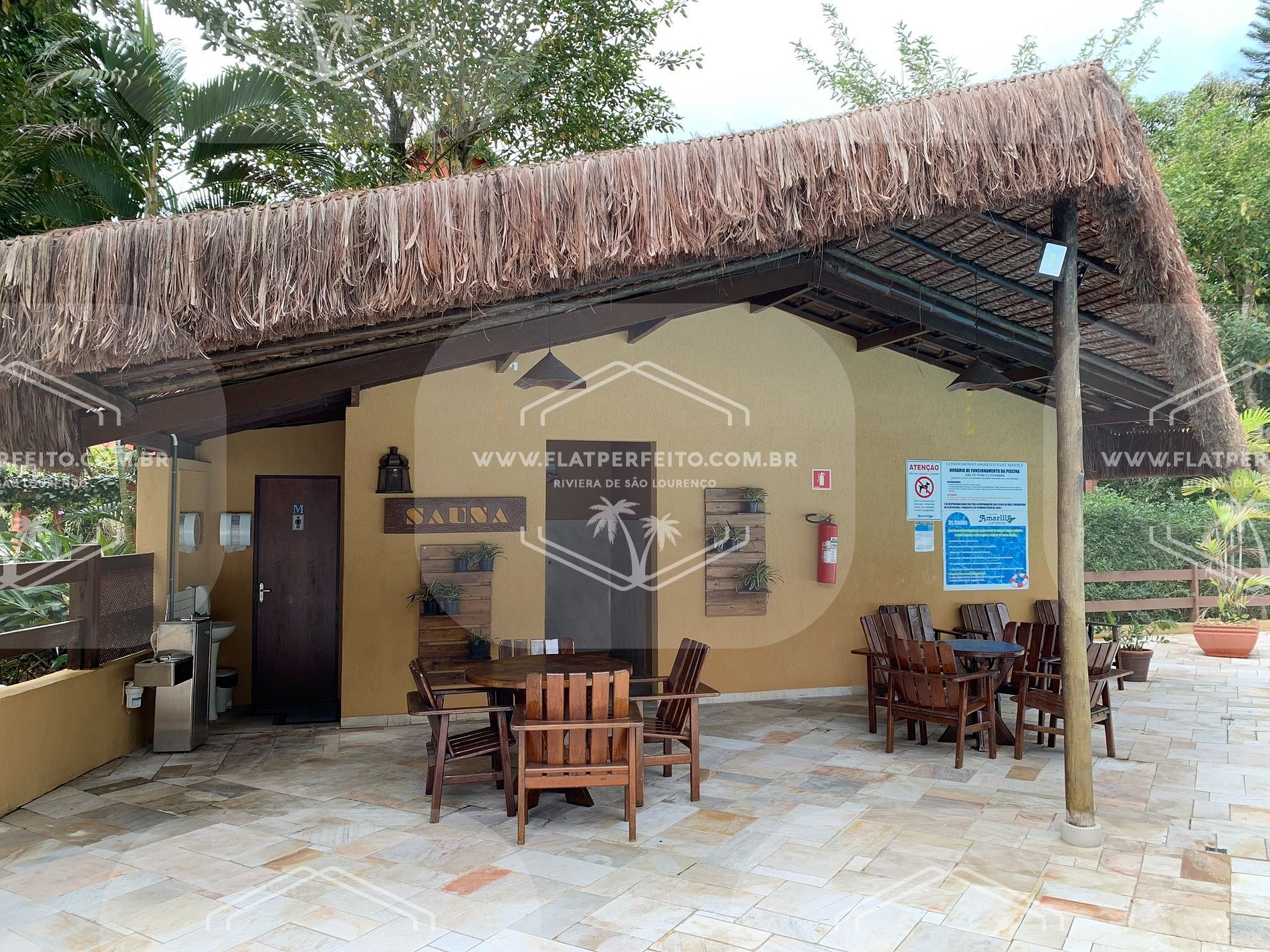 O Condomínio possui mini mercado, salão de jogos, parquinho infantil, restaurante, 3 piscinas climatizadas, ao ar livre, sauna, serviço de praia com cadeiras e guarda sol montados na praia permanente aos sábados, domingos, feriados e dias-ponte. Na temporada de verão poderá haver transporte condomínio/praia/condomínio e serviço de praia diário, consulte as datas disponíveis.